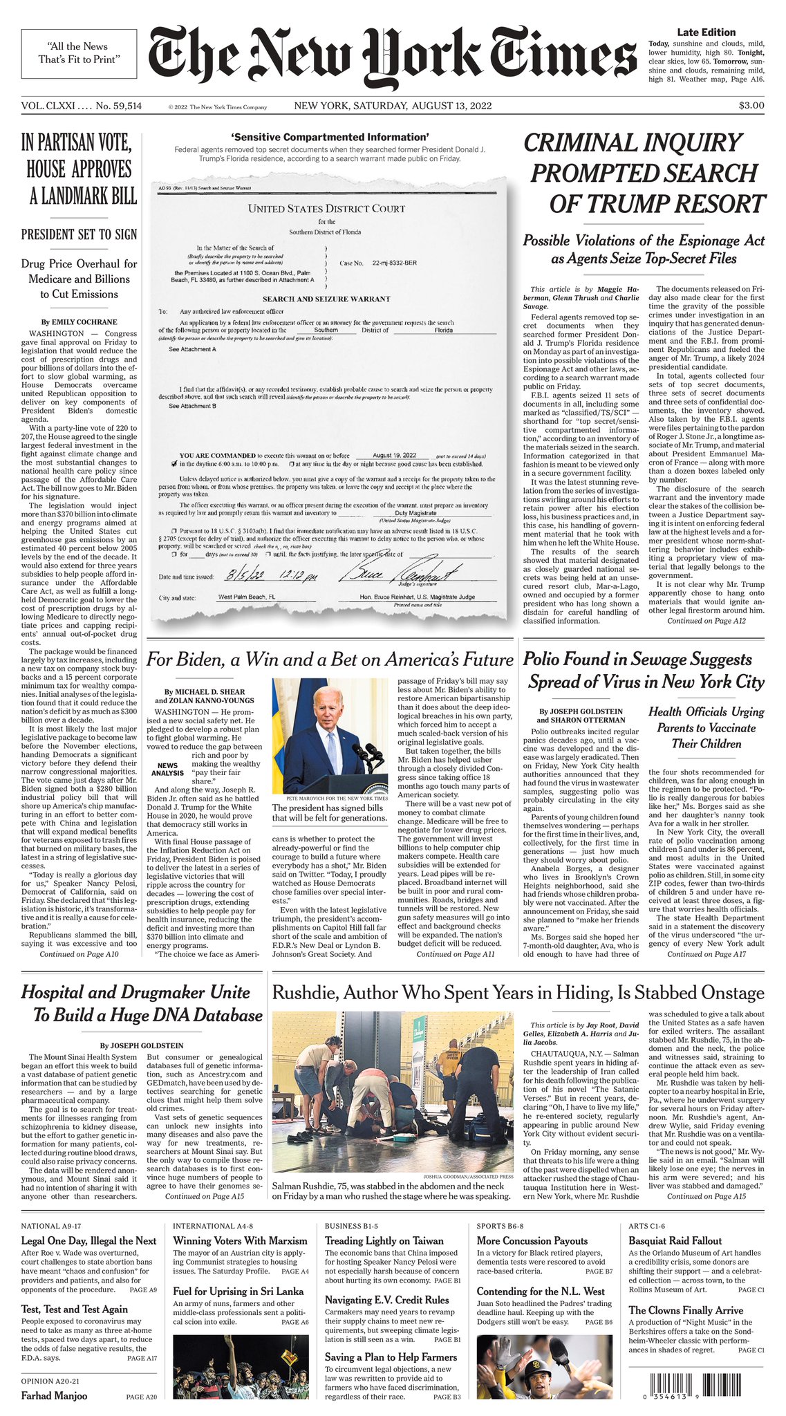 Dan Bongino: The #FBI is broken! | Trump lashes out at FBI amid fallout from Mar-a-Lago raid: 'See what they were willing to do' | The front page of The New York Times for August 13, 2022