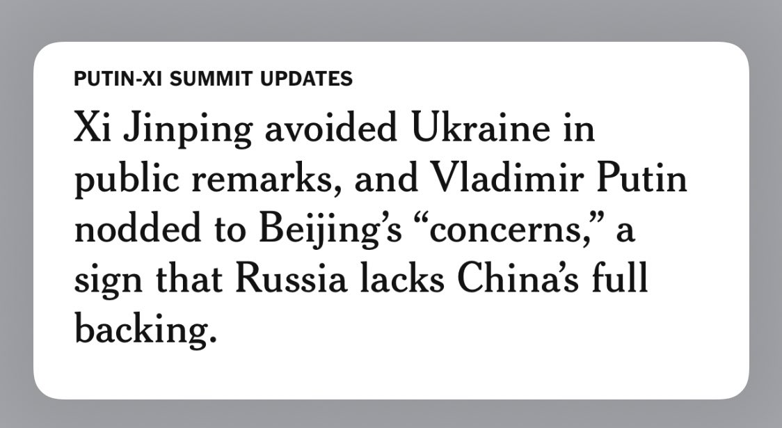XI SET THE LIMITS ON THE CLAIMED "BOUNDLESS FRIENDSHIP" STATUS. #PUTIN LOOKS SURPRIZED AND DISAPPOINTED, XI RESERVED, RATIONAL, WELL INFORMED, CAUTIOUS.