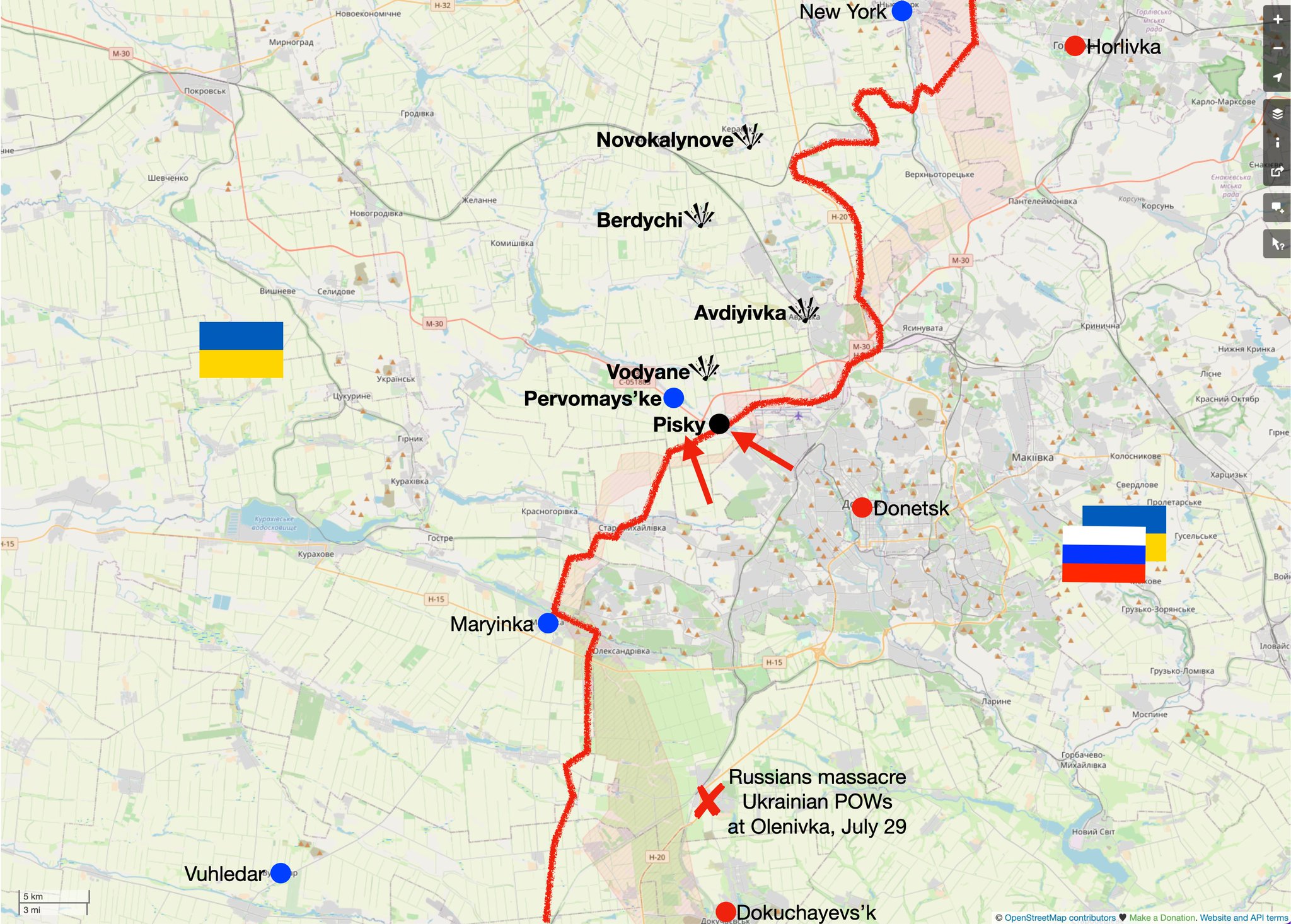 Northwest of the temporarily-occupied city of Donetsk, the Russian fascist invaders attacked Ukrainian positions near Pisky and Pervomays'ke. The rashists were defeated.and made no gains.