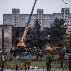 A helicopter crashed into a building near a kindergarten in the city of Brovary outside the Ukrainian...